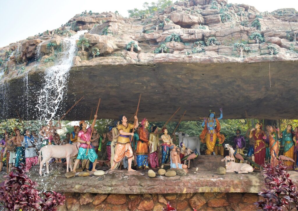 Lord Krishna raised the Govardhan Hill with one finger as a kid to save his hometown, Mathura, from heavy rains and thunderstorms. As a result, this hill is sacred to all Krishna devotees. First, devotees visit the hill on Guru Purnima and perform the Govardhan Puja post-Diwali. Then, they walk 23 kilometres barefoot around the mountain in a ‘parikrama to pay their obeisance.’